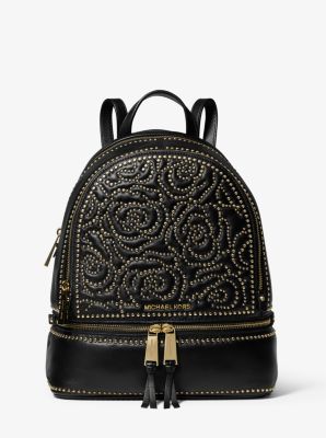 Genuine MICHAEL KORS RHEA ZIP MEDIUM LEATHER BACKPACK stud black sales | eBay