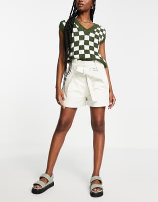 Faux leather shorts with belt in cream