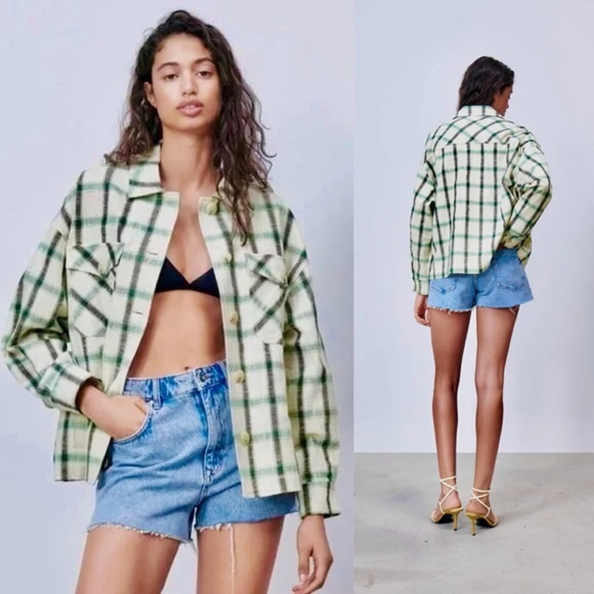 Zara White Green Plaid Shirt Jacket Shacket Overshirt S | eBay