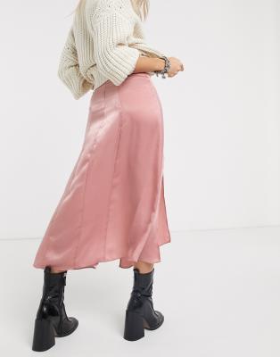 Pink Satin Bias Midi Skirt – Dressed in
