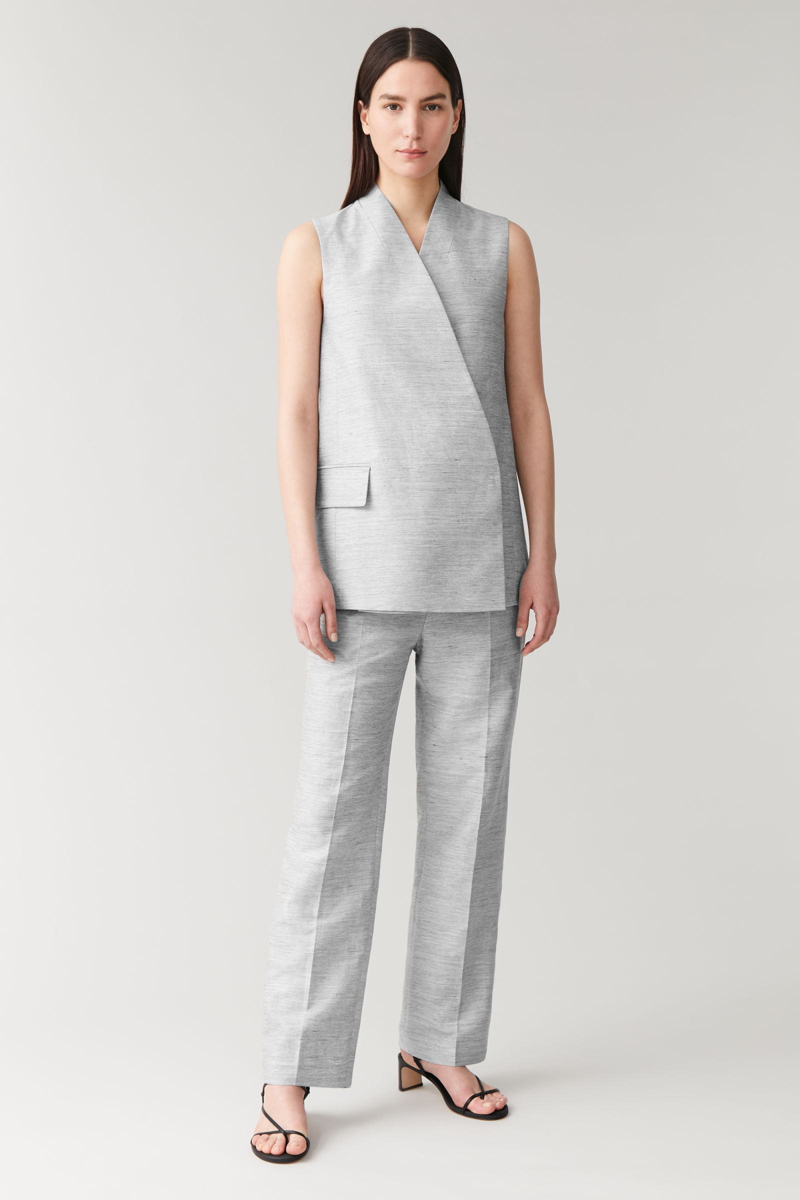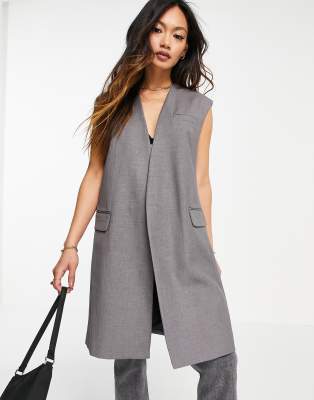 Mango sleeveless long blazer in grey | ASOS