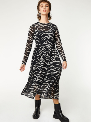 Buy Black Zebra Print Mesh Midi Dress